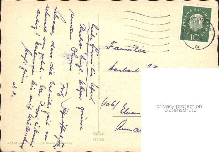 alte Postkarte Motorboote Hamburg Hafen Michaeliskirche postalisch gelaufen Erhaltung siehe scans