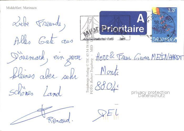 alte Postkarte Motorboote Middelfart Marinaen postalisch gelaufen Erhaltung siehe scans [PaolaD17 kt110box]
