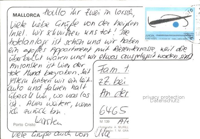 alte Postkarte Motorboote Porto Cristo Mallorca postalisch gelaufen Erhaltung siehe scans