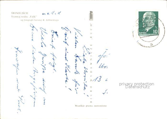 alte Postkarte Motorboote Swinoujscie Tramwaj wodny Fafik postalisch gelaufen Erhaltung siehe scans