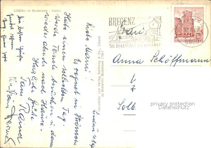 alte Postkarte Motorschiffe Allgaeu Lindau Bodensee Hafen Leuchtturm postalisch gelaufen Erhaltung siehe scans