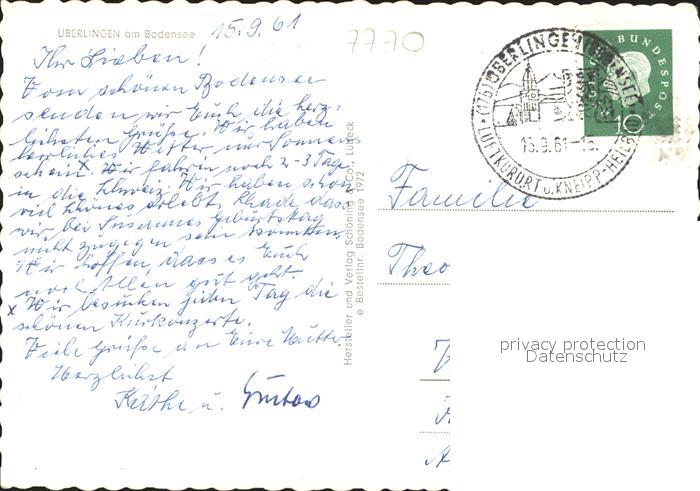 alte Postkarte Motorschiffe Allgaeu ueberlingen Bodensee postalisch gelaufen Erhaltung siehe scans