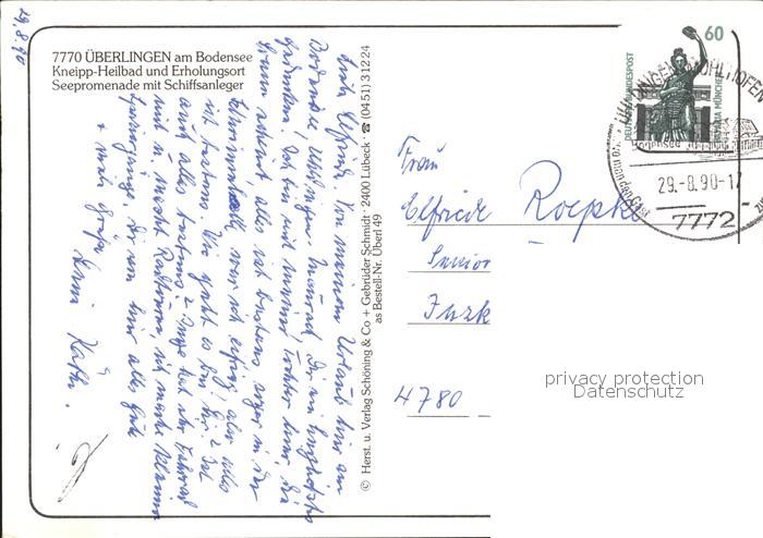 alte Postkarte Motorschiffe Baden ueberlingen Bodensee Seepromenade Schiffsanleger postalisch gelaufen Erhaltung siehe scans
