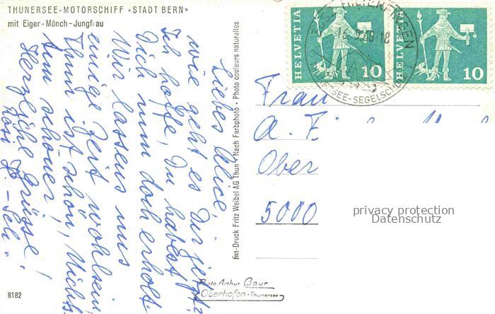 74058824 alte Postkarte Motorschiffe Binnenschifffahrt Thunersee Stadt Bern Eiger Moench Jungfrau postalisch gelaufen Erhaltung siehe scans [IrynaD87] KatCode: 22480000000100