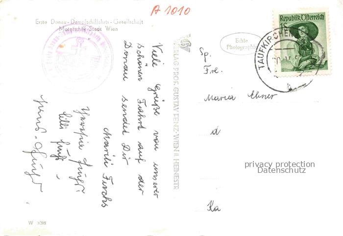 74012010 alte Postkarte Motorschiffe Binnenschifffahrt Wien Erster Donau Dampfschiffahrt postalisch gelaufen Erhaltung siehe scans [IrynaD87] KatCode: 22480000000100