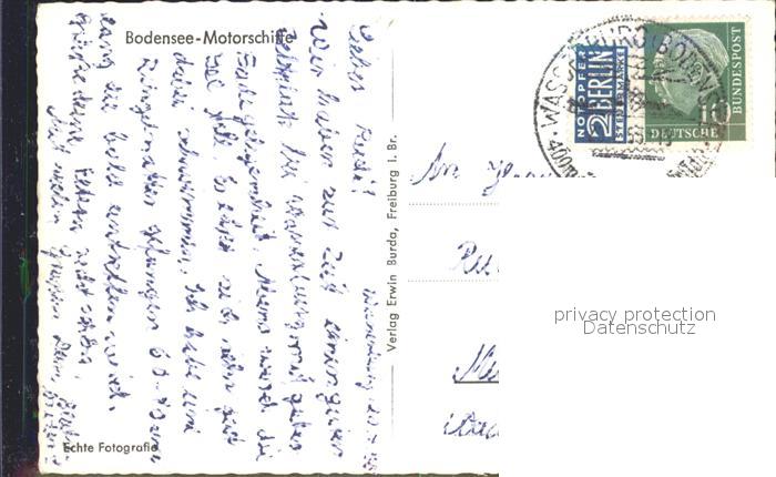 alte Postkarte Motorschiffe Bodensee Deutschland Austria Schwaben Allgaeu Baden postalisch gelaufen Erhaltung siehe scans