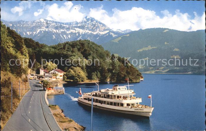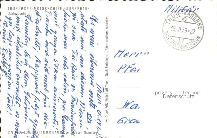 alte Postkarte Motorschiffe Jungfrau Thunersee Beatenbucht postalisch gelaufen Feldpost Erhaltung siehe scans