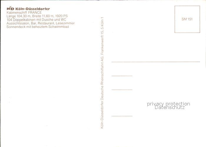 Motorschiffe Kabinenschiff France Koeln-Duesseldorfer postalisch nicht gelaufen Erhaltung siehe scans [PaolaD17]