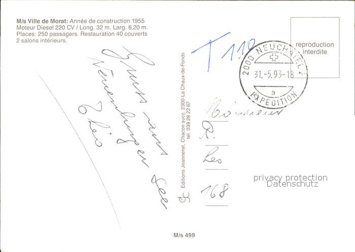 alte Postkarte Motorschiffe M/s Ville de Morat postalisch gelaufen Erhaltung siehe scans