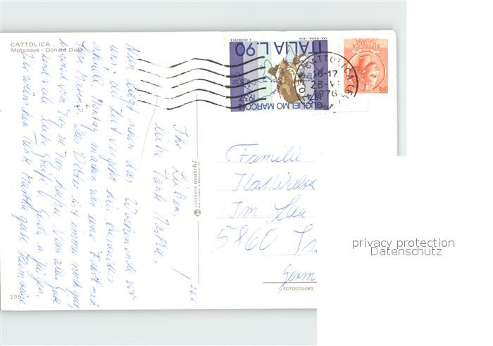 alte Postkarte Motorschiffe Motonave Donald Duck Cattolica postalisch gelaufen Erhaltung siehe scans