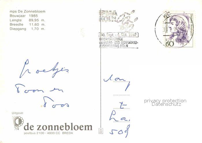 alte Postkarte Motorschiffe MPS De Zonnebloem postalisch gelaufen Erhaltung siehe scans [PaolaD17]