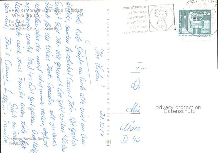 alte Postkarte Motorschiffe MS Berlin Weisse Flotte Potsdam postalisch gelaufen Erhaltung siehe scans