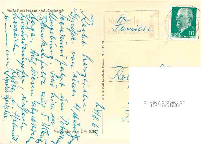 alte Postkarte Motorschiffe MS Cecilienhof Weisse Flotte Potsdam postalisch gelaufen Erhaltung siehe scans [PaolaD17]