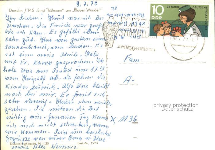alte Postkarte Motorschiffe MS Ernst Thaelmann Blaues Wunder Dresden postalisch gelaufen Erhaltung siehe scans