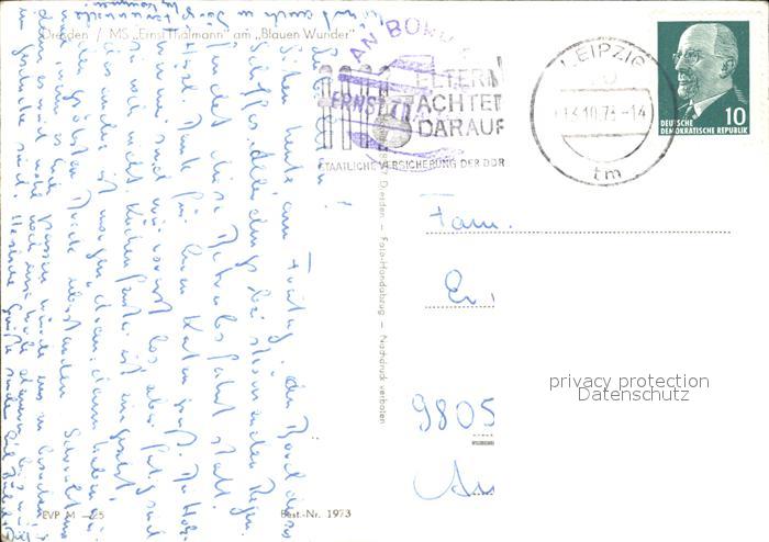 alte Postkarte Motorschiffe MS Ernst Thaelmann Dresden Blaues Wunder postalisch gelaufen Erhaltung siehe scans
