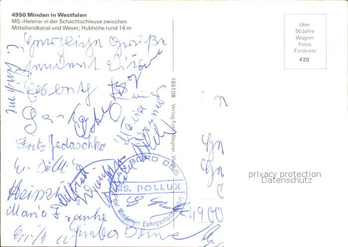 Motorschiffe MS Helena Schachtschleuse Mittellandkanal Weser Minden postalisch nicht gelaufen Erhaltung siehe scans