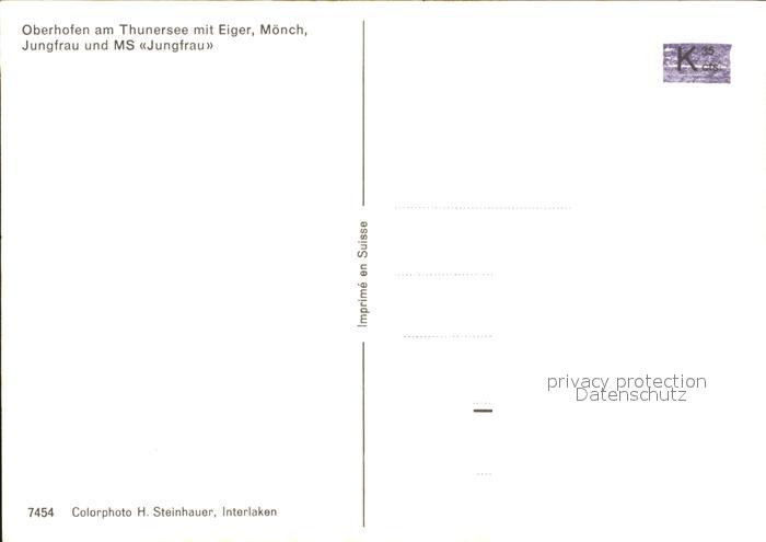 Motorschiffe MS Jungfrau Oberhofen Thunersee Eiger-Moench-Jungfrau postalisch nicht gelaufen Erhaltung siehe scans