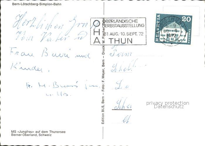 alte Postkarte Motorschiffe MS Jungfrau Thunersee Segelboot postalisch gelaufen Erhaltung siehe scans