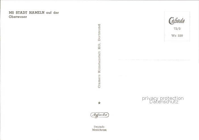 Motorschiffe MS Stadt Hameln Oberweser postalisch nicht gelaufen Erhaltung siehe scans