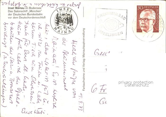 alte Postkarte Motorschiffe Muenchen Insel Mainau Deutschordensschloss postalisch gelaufen Erhaltung siehe scans