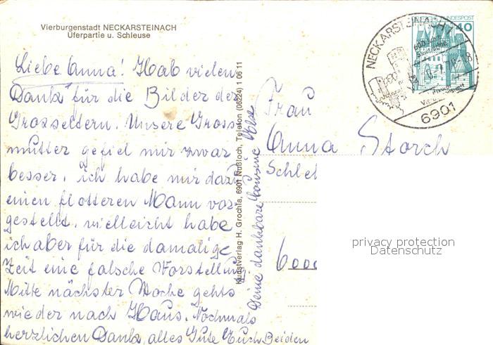 alte Postkarte Motorschiffe Neckarsteinach Uferpartie Schleuse postalisch gelaufen Erhaltung siehe scans