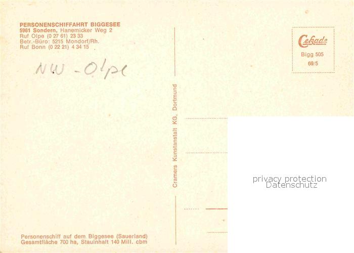 72906158 Motorschiffe Personenschifffahrt Biggesee Sondern KatCode 22480000000300