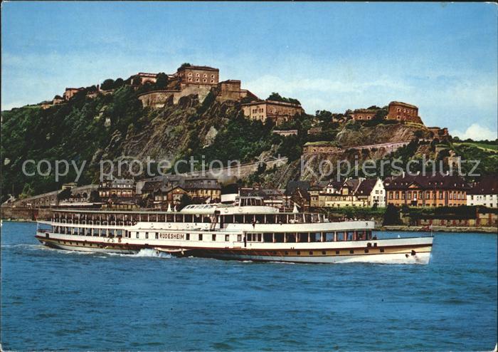 alte Postkarte Motorschiffe Ruedesheim Koblenz Festung Ehrenbreitstein postalisch gelaufen Erhaltung siehe scans