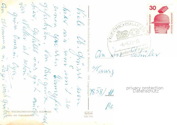 alte Postkarte Motorschiffe Stuttgart Vorarlberg Friedrichshafen Bodensee Hafenbahnhof postalisch gelaufen Erhaltung siehe scans [PaolaD17]