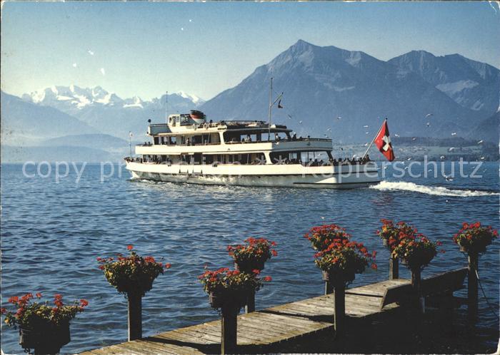 alte Postkarte Motorschiffe Thunersee Bluemlisalp Niesen postalisch gelaufen Erhaltung siehe scans