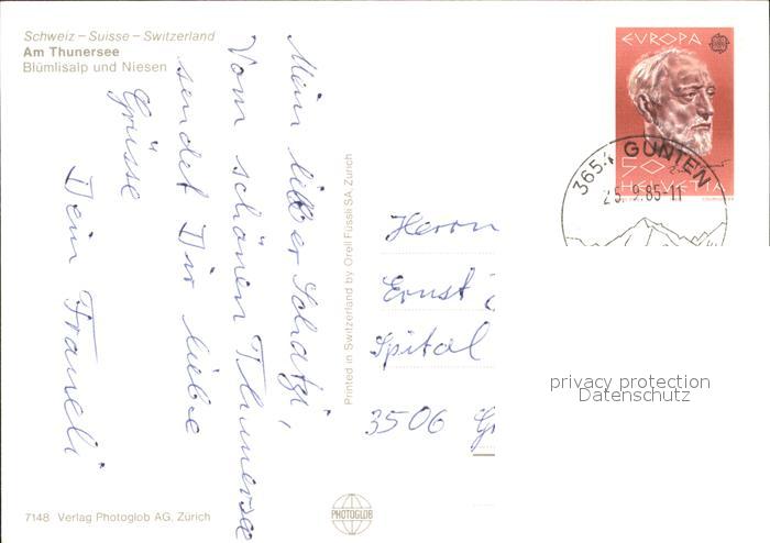 alte Postkarte Motorschiffe Thunersee Bluemlisalp Niesen postalisch gelaufen Erhaltung siehe scans