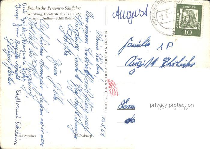 alte Postkarte Motorschiffe Undine Wuerzburg postalisch gelaufen Erhaltung siehe scans