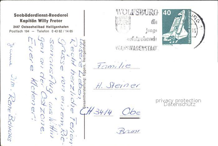alte Postkarte Motorschiffe Wappen von Heiligenhafen postalisch gelaufen Erhaltung siehe scans [PaolaD17]