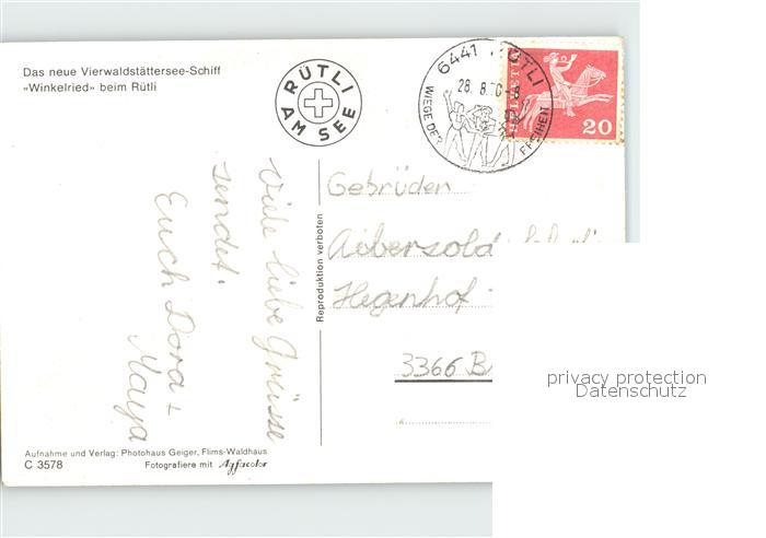 alte Postkarte Motorschiffe Winkelried Ruetli Vierwaldstaettersee postalisch gelaufen Erhaltung siehe scans
