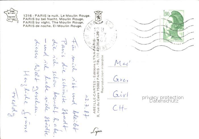 12124185 carte postale Moulin Rouge Paris postalisch gelaufen Erhaltung siehe scans KatCode: 11170075175056