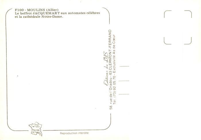 13941567 Moulins 03 Allier Le beffroi Jacquemart aux automates celebres et la cathedrale Notre Dame postalisch nicht gelaufen Erhaltung siehe scans [WerneD78] Wern Katcode 11170003203190