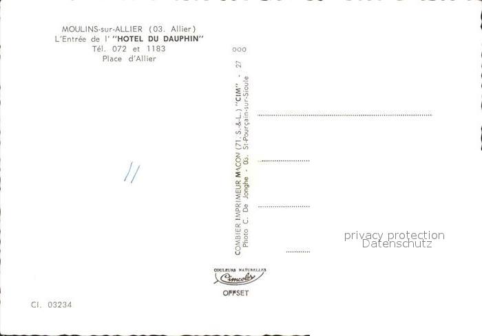11909176 Moulins Allier Hotel Dauphin postalisch nicht gelaufen Erhaltung siehe scans KatCode: 11170003203190
