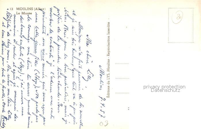 13489959 Moulins Allier Le Musee postalisch nicht gelaufen Erhaltung siehe scans [FriedD77] KatCode: 11170003203190
