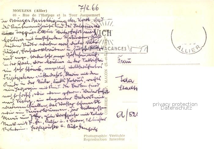 13226113 carte postale Moulins Allier Rue de l Horloge Tour Jacquemart postalisch gelaufen Erhaltung siehe scans [KathaD81] KatCode: 11170003203190