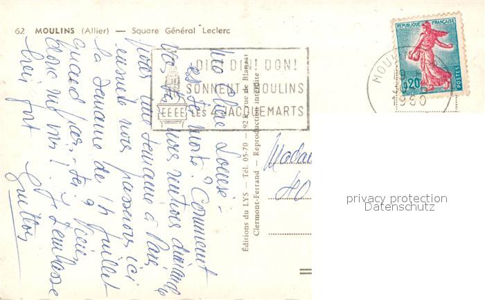 13534834 carte postale Moulins Allier Square General Leclerc postalisch gelaufen Erhaltung siehe scans [WerneD78] KatCode: 11170003203190