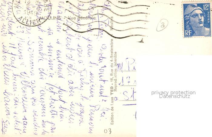 13492787 carte postale Moulins Allier Vue Generale postalisch gelaufen Erhaltung siehe scans [FriedD77] KatCode: 11170003203190