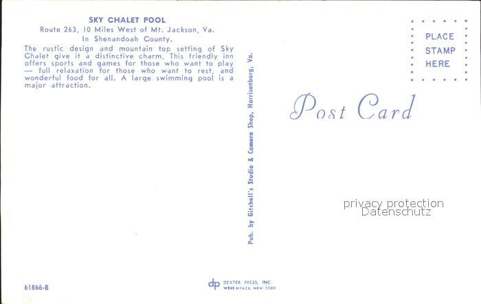 72240596 Mount Jackson Sky Chalet Pool postalisch nicht gelaufen Erhaltung siehe scans KatCode: 14140490000000