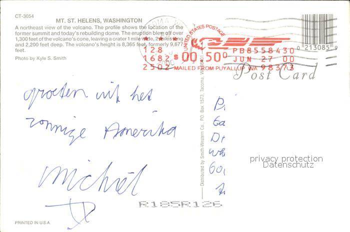 72479605 old postcard Mount Saint Helens Volcano Vulkan postalisch gelaufen Erhaltung siehe scans KatCode: 14140160000000