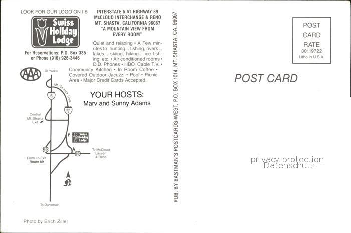 72233182 Mount Shasta Swiss Holiday Lodge postalisch nicht gelaufen Erhaltung siehe scans KatCode: 14140050000000