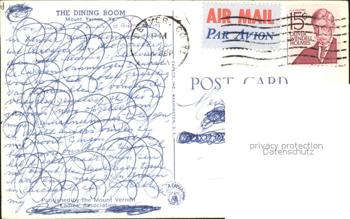 71940982 old postcard Mount Vernon Virginia Dining Room postalisch gelaufen KatCode: 14140490000000