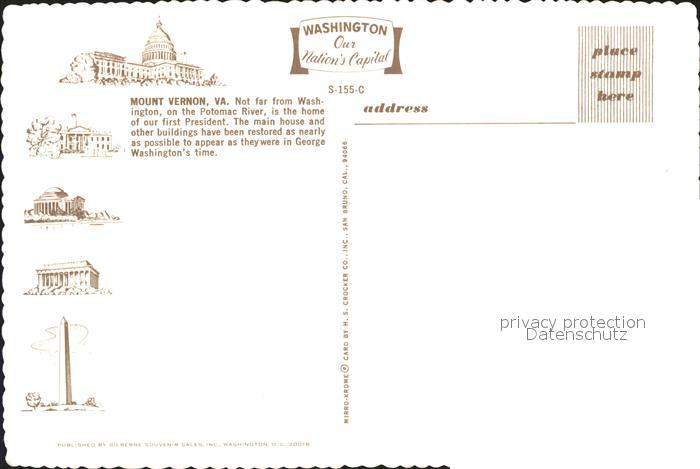 71847896 Mount Vernon Virginia Home of First President George Washington postalisch nicht gelaufen Erhaltung siehe scans KatCode: 14140490000000