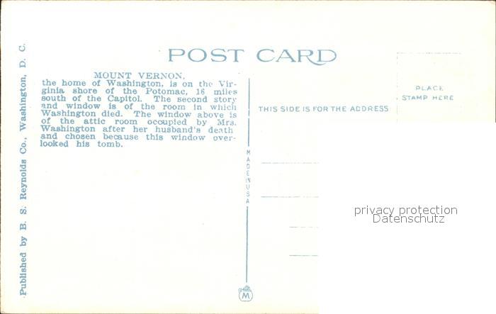 11686372 Mount Vernon Virginia Washingtons Mansion postalisch nicht gelaufen Erhaltung siehe scans KatCode: 14140490000000