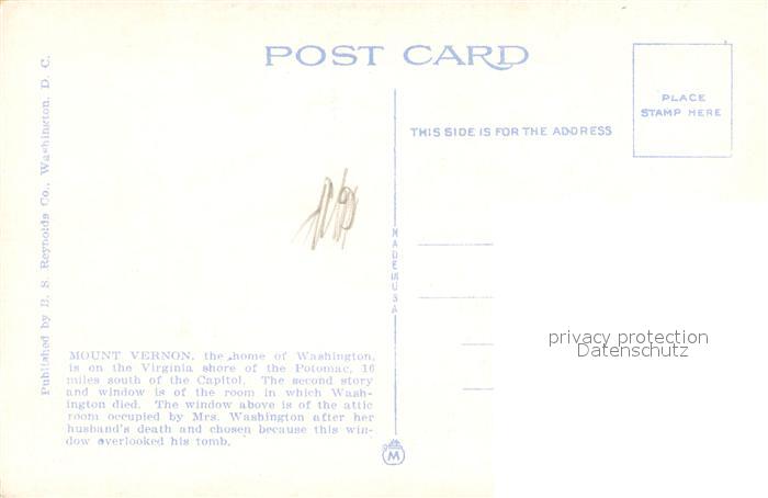 73712985 Mount Vernon Virginia Washingtons Mansion Illustration postalisch nicht gelaufen Erhaltung siehe scans [FriedD77] KatCode: 14140490000000