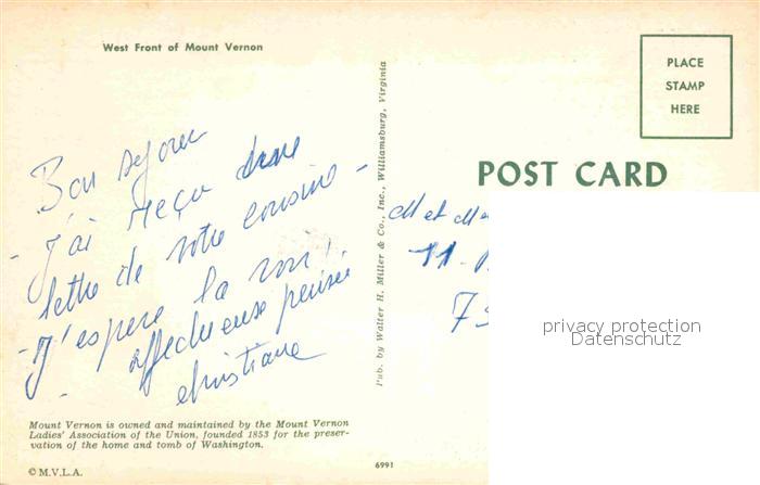 72749701 Mount Vernon Virginia Westfront postalisch nicht gelaufen Erhaltung siehe scans [KathaD81] KatCode: 14140490000000