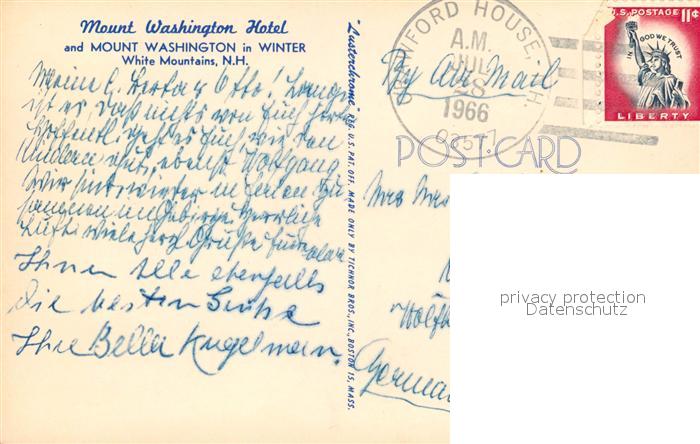 73153910 old postcard Mount Washington New Hampshire Mount Washington Hotel postalisch gelaufen Erhaltung siehe scans [LiesaD40] KatCode: 14140310000000