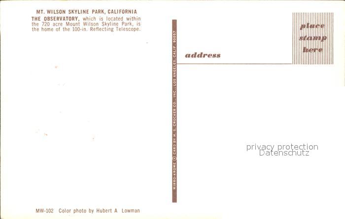 71954703 Mount Wilson The Observatory postalisch nicht gelaufen Erhaltung siehe scans KatCode: 14140050000000